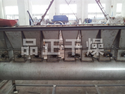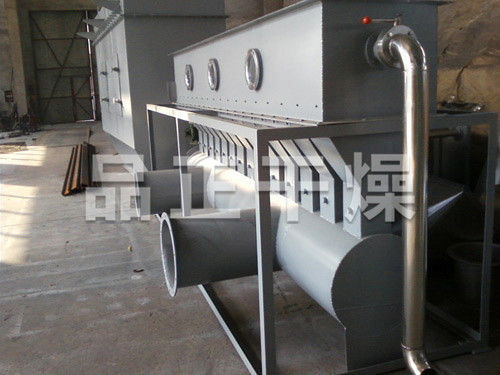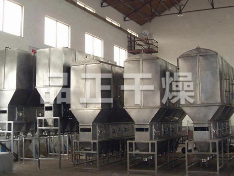潔凈的熱風經閥板分配進入床體內,從加料器進入的濕物料被熱風形成沸騰狀態。由于熱風與物料廣泛接觸,增強了傳熱傳質的過程,因此在較短時間內就可干燥。如用連續型,物料從床體的一頭進入,經過幾十秒至幾分鐘沸騰干燥,自動從床體另一頭流出。本設備一般進行負壓操作。