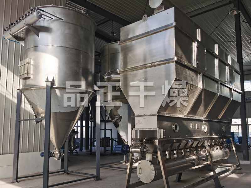 作臺組成,由于干燥物料的性質不同,配套除塵設備時,可按需要考慮,可同時選擇旋風分離器、布袋除塵器,也可選擇其中一種,一般來說比重較大的如沖劑及顆粒料干燥只需選擇旋風分離器,比重較輕的小顆粒狀和粉狀物料需配套布袋除塵器,并備有氣力送料裝置及皮帶輸送機供選擇。