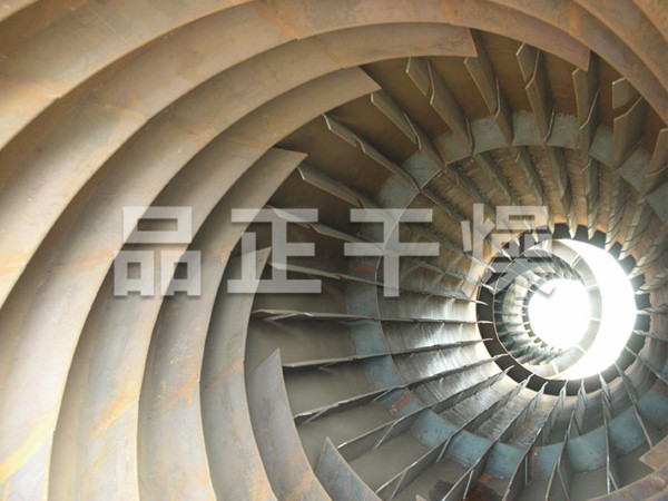 濕物料從干燥機一端投入后,在內(nèi)筒均布的抄板器翻動下,物料在干燥器內(nèi)均勻分布與分散,并與并流(逆流)的熱空氣充分接觸,加快了干燥傳熱,傳至推動力。在干燥過程中,物料在帶有傾斜度的抄板和熱氣流的作用下,可調(diào)控地運動至干燥機另一段星形卸料閥排出成品。
