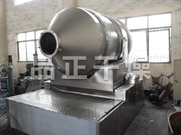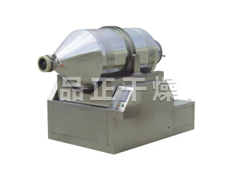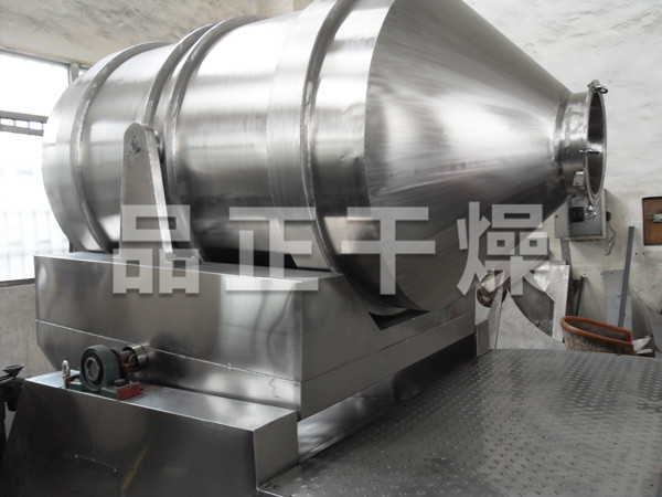 EYH二維混料機的轉筒可同時進行二個運動,一個為轉筒的轉動,另一個為轉筒隨擺動架的擺動。被混合物料在轉筒內隨轉筒轉動、翻轉、混合的同時,又隨轉筒的擺動而發生左右來回的摻混運動,在這兩個運動的共同作用下,物料在短時間內得到充分的混合。EYH二維混料機適合所有粉、粒狀物料的混合。