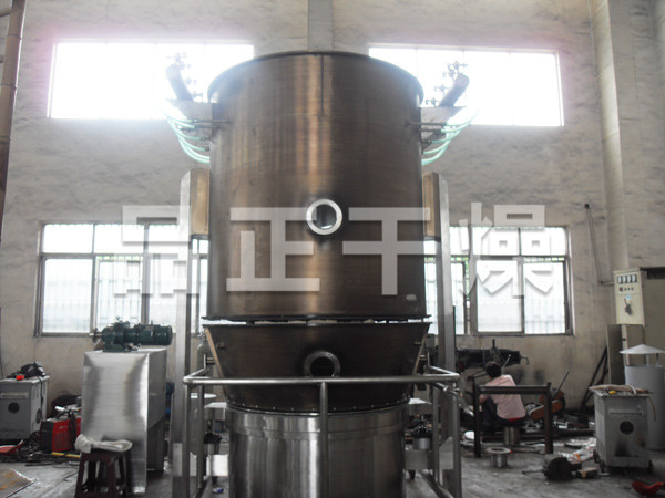 空氣經(jīng)加熱凈化后,由引風(fēng)機(jī)從下部導(dǎo)入,穿過料斗的孔網(wǎng)板。在工作室內(nèi),經(jīng)攪拌和負(fù)壓作用形成流態(tài)化,水份快速蒸發(fā)后隨著排氣帶走,物料快速干燥。
